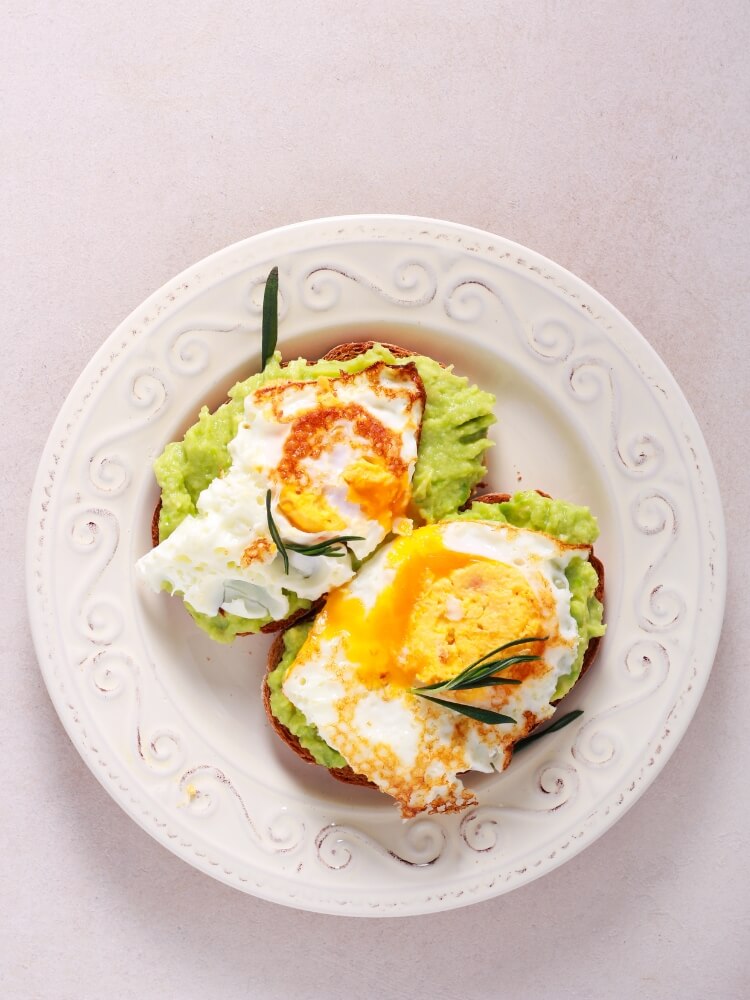 Ook een ontbijt met brood kan bijdragen aan een stabiele bloedsuikerspiegel. Het meeste brood bevat veel koolhydraten die je bloedsuikerspiegel sterker beïnvloeden, combineer het daarom met vetten uit avocado en eiwitten uit ei. Je kunt er eventueel nog wat bessen bij nemen voor de zoete smaak.