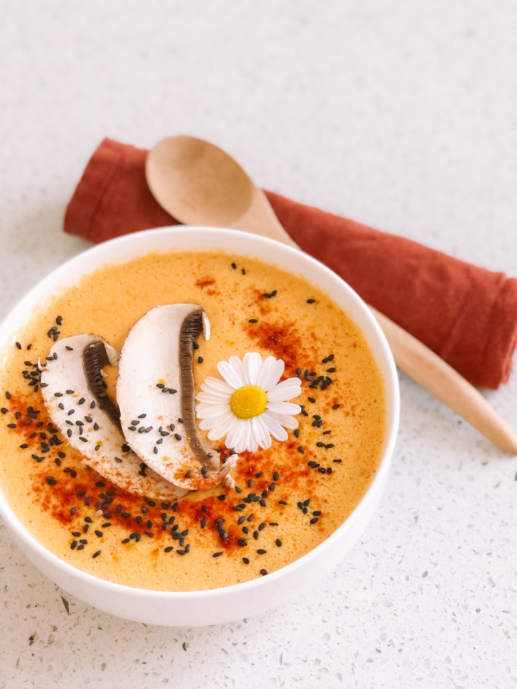 Dien de soep op met wat brood, een hartige muffin of eet hem gewoon zo. Hij is nog ca. 4 dagen houdbaar in de koelkast na bereiding.