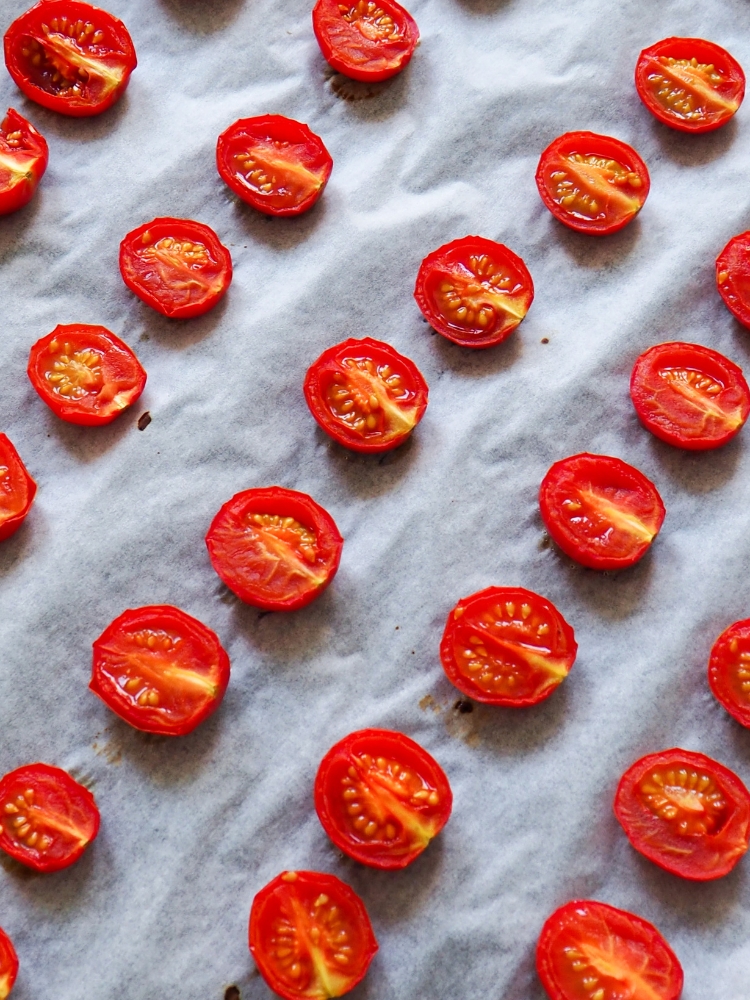 Wij eten de tomaten vaak op brood, door salades, pastasaus of naast een omelet. Door het langzame droogproces worden de tomaten zoeter, zoutiger en romiger. Dus extra olie of zout is niet nodig (trust me on this).
