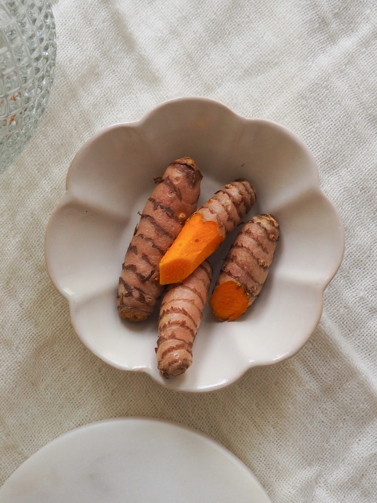 Kurkuma is een wortel die al duizenden jaren in andere culturen gebruikt wordt om zijn krachtige werking. Zo is het erg ontstekingsremmend, zacht voor je darmen, gaat misselijkheid en (hoofd)pijn tegen, verbetert je huid en circulatie en versterkt je immuunsysteem als je het dagelijks gaat gebruiken. Kurkuma is het sterkste in combinatie met zwarte peper. Gebruik daarom ook altijd een klein beetje peper als je kurkuma bereidt.